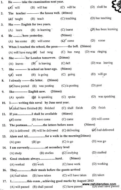 Here are important MCQs for class 9th English. These questions have appeared in previous board papers and a carefully made list is here.